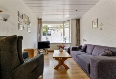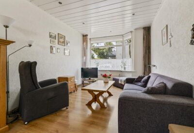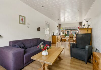 Je stapt binnen in de ruime hal met meterkast, trapopgang naar de eerste verdieping en het toilet. Vanuit de hal kun je de ruime- en door de grote ramen – lichte woonkamer binnenstappen. Er is nu een dichte keuken met enkele inbouwapparatuur.