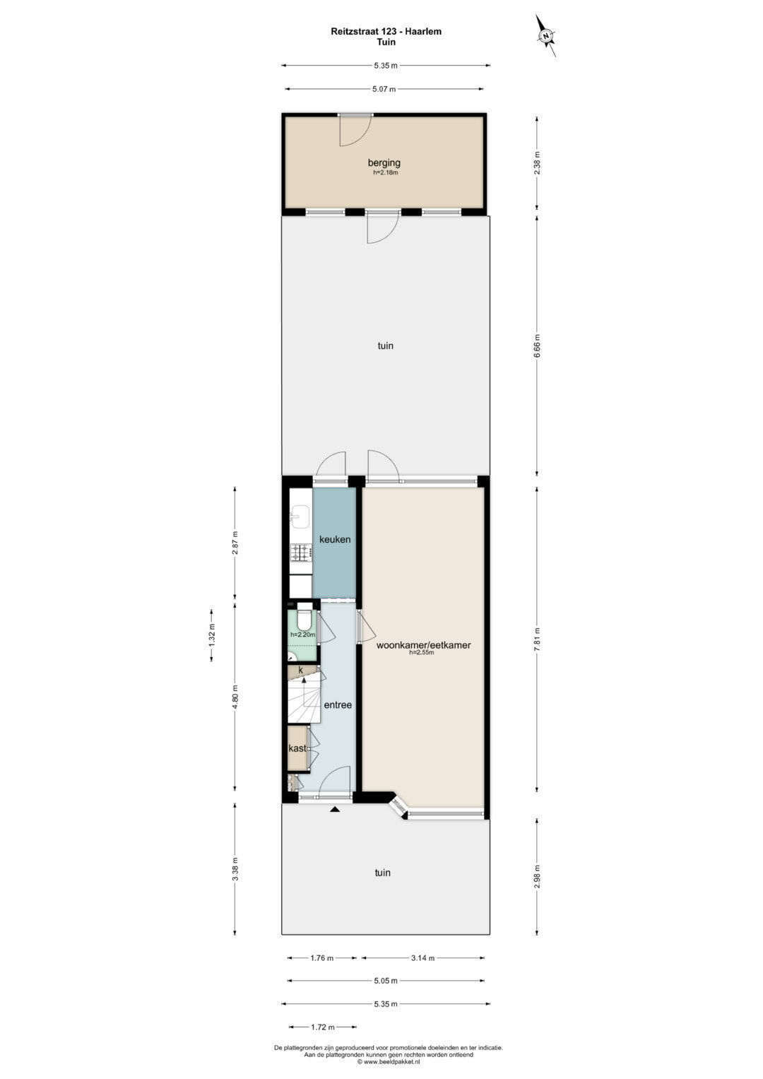 Ruime voor- en achtertuin. De tuin is gelegen op het noordoosten en er is een zeer ruime (circa 12 m2) stenen berging. Ideaal!